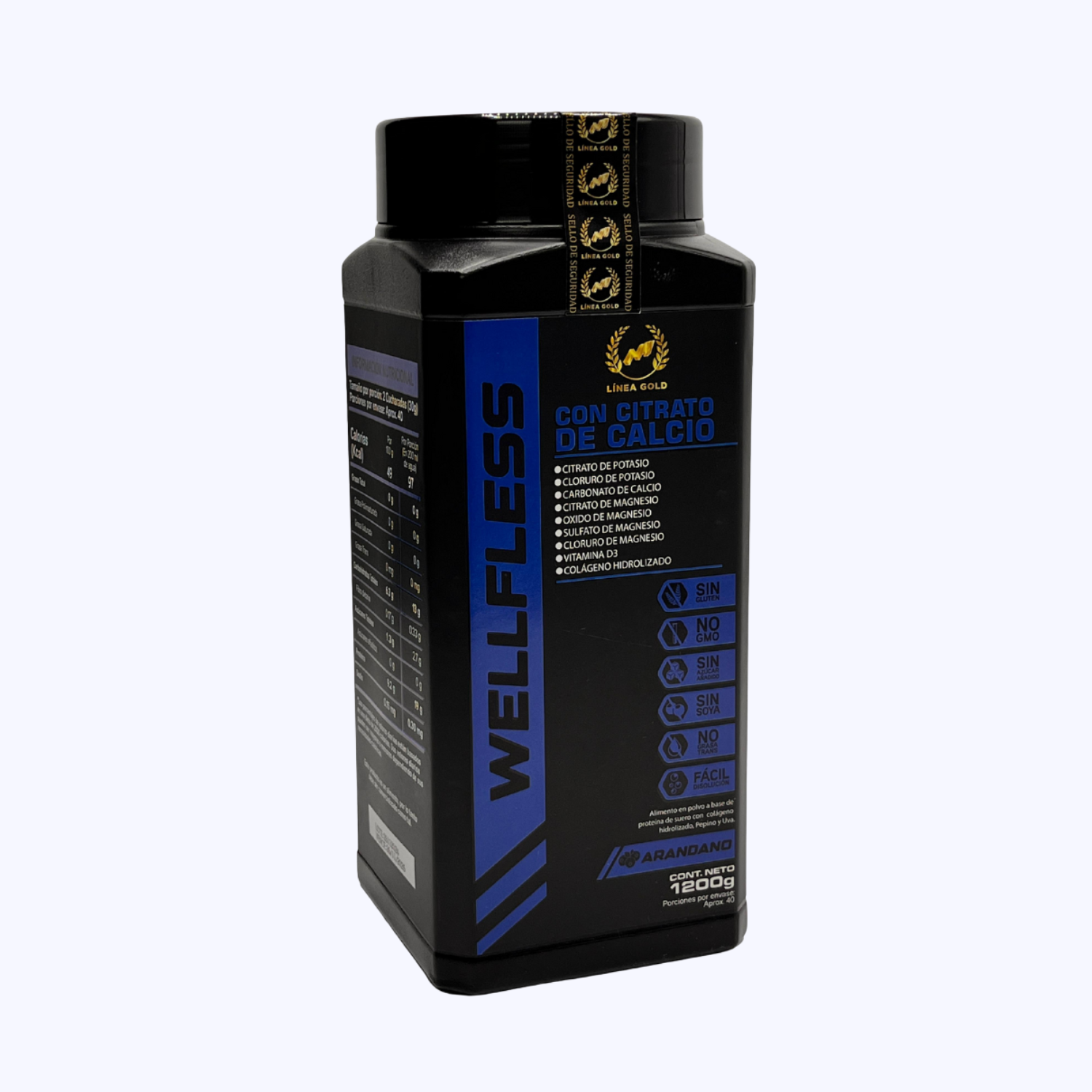 Wellfless es un suplemento en polvo efervescente formulado para apoyar la salud ósea, muscular y articular. Su combinación de minerales esenciales, vitamina D3 y colágeno hidrolizado favorece la absorción de nutrientes, fortalece huesos y articulaciones, y contribuye al cuidado de piel, cabello y uñas. Una mezcla completa, práctica y deliciosa para un estilo de vida activo y saludable.